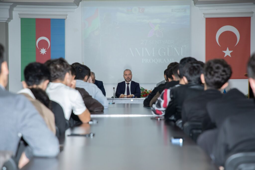 Bu gün Gəncliyə Yardım Fondunun rəhbərliyi və təhsil şöbəsinin nümayəndələri ilə Azərbaycanın müxtəlif universitetlərində təhsil alan tələbələr arasında 27 sentyabr Anım Gününə həsr edilmiş görüş keçirilib. Görüşdə yeni tədris ilində universitetə qəbul olan tələbələr, müəllimlər və təhsil koordinatorları iştirak edib.
