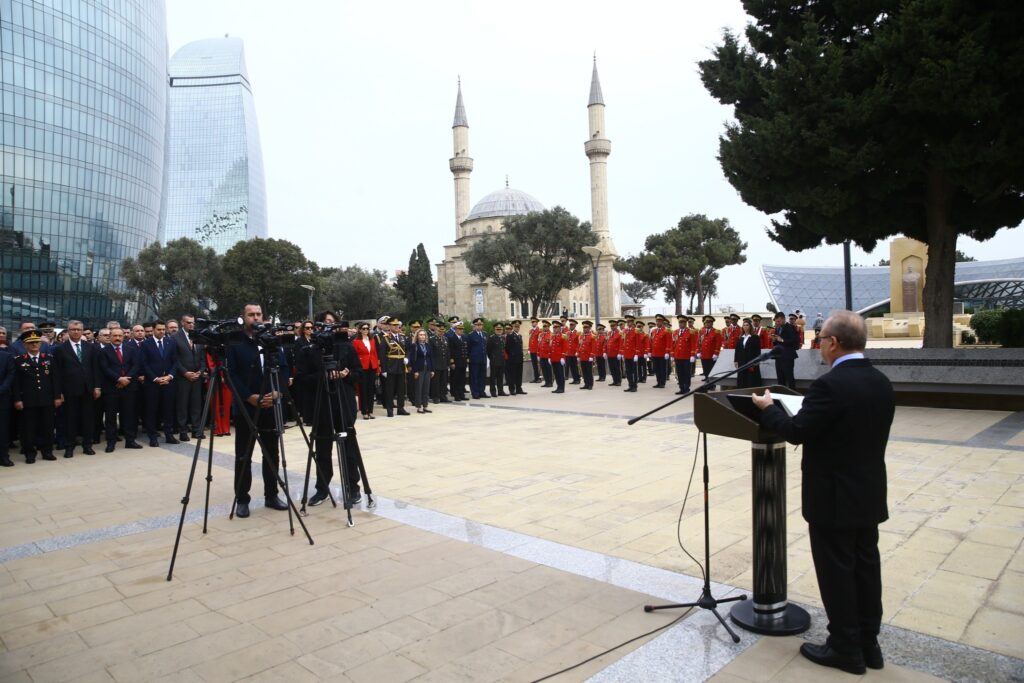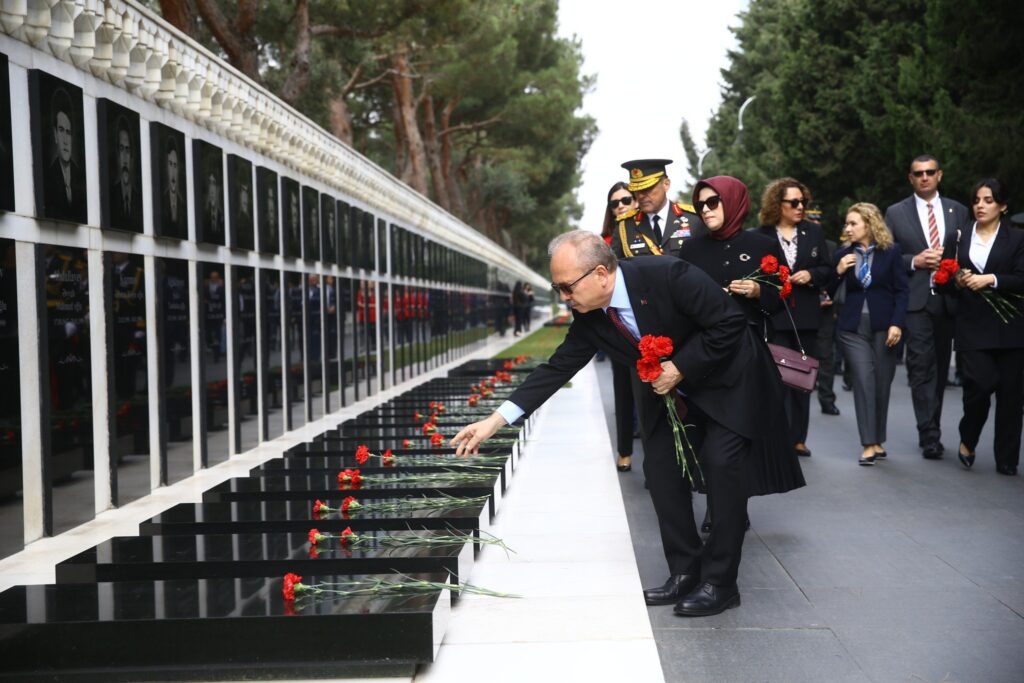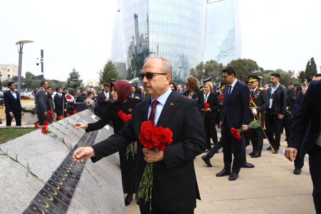 Ziyarətdə Türkiyənin Azərbaycandakı səfiri professor Birol Akgün, səfirlik nümayəndələri, bir sıra vəzifəli şəxslər və Gəncliyə Yardım Fondunun kollektivi iştirak edib. Əvvəlcə şəhidlərin ruhları bir dəqiqəlik sükutla yad edilib, ardından Azərbaycan və Türkiyənin Dövlət Himnləri səsləndirilib. Daha sonra Türk şəhidliyi və Şəhidlər xiyabanı ziyarət edilib, abidənin önünə əklil qoyulub, tər qərənfillər düzülüb.