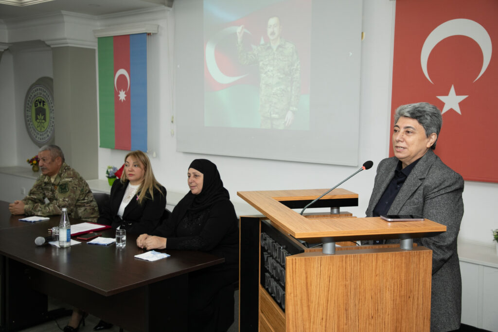 Tədbirdə əvvəlcə şəhidlərin xatirəsi bir dəqiqəlik sükutla yad edilib, Azərbaycanın Respublikasının Dövlət himi səsləndirilib. Vətən müharibəsi boyunca əsgər və zabitlərimizin qəhrəmanlığından bəs edən video təqdim edilib.