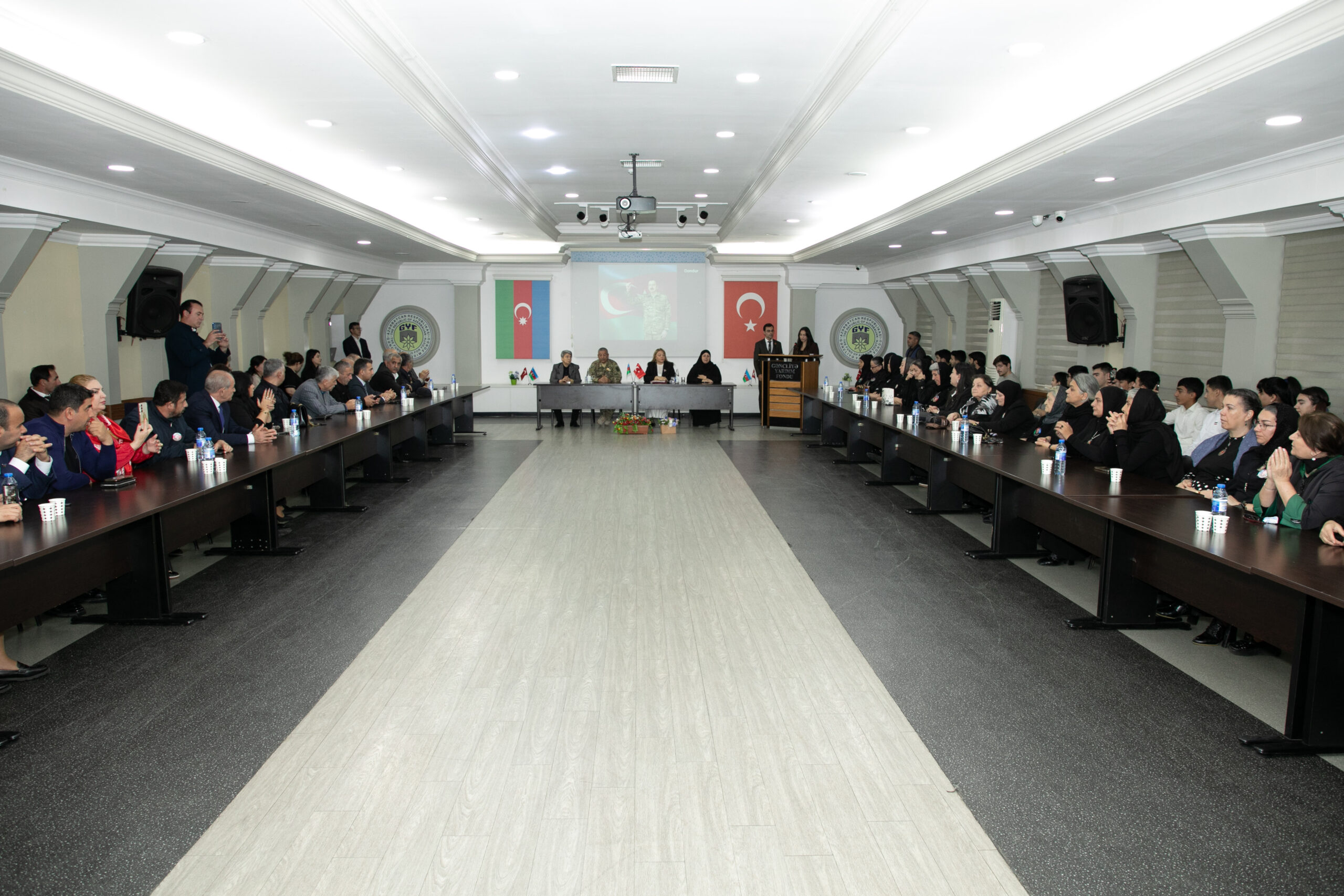 Tədbirdə əvvəlcə şəhidlərin xatirəsi bir dəqiqəlik sükutla yad edilib, Azərbaycanın Respublikasının Dövlət himi səsləndirilib. Vətən müharibəsi boyunca əsgər və zabitlərimizin qəhrəmanlığından bəs edən video təqdim edilib.
