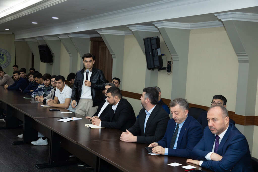 Görüşdə cənab səfir “Maarif və Gənclik” mövzusu ətrafında çıxış edib. Professor Birol Akgün gənclərə təhsil aldıqları ixtisası dərindən mənimsəyərək gələcəkdə işlərinin peşəkarı olmaları və şəxsi inkişafa fokuslanmaları barədə öz tövsiyyəsini bölüşüb. Tarixə nəzər saldıqda türk dövlətlərinin geniş coğrafiyaya yayıldığını və hökmranlıq etdiyini, ədalət və mərhəməti təmsil etdiyini, elmin və mədəniyyətin mərkəzi hesab edildiyi bildirən cənab səfir qeyd edib ki, gənclər örnək kimi əvvəlcə ənənəmizə, keçmişimizə baxmalıdır. Professor Birol Akgün daha sonra gənclərin suallarını cavablandırıb.