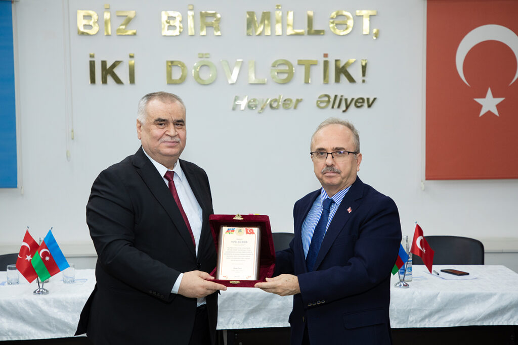 Sonda Gəncliyə Yardım Fondunun prezidenti Ahmet Tecim tərəfindən cənab səfir Birol Akgünə plaket tədim olunub.